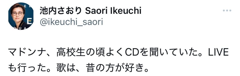 高校時代の池内さおり氏は、マドンナに夢中になっていたそうです。